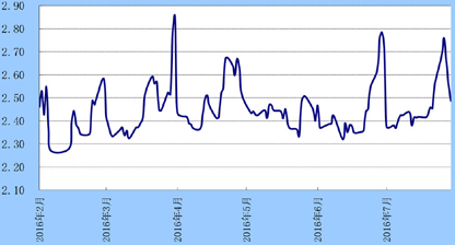 货币市场:上周,央行公开市场连续第二周净投放,规模创一个月新高,7月下旬以来因缴税等因素导致的资金面波动得到平抑,银行间市场质押式回购主要品种呈现不同程度的下行,其中,7天期品种收益率下行7个基点至2.49%。