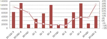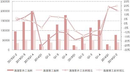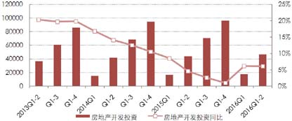 从季度开发投资同比增幅看,在2015年呈现逐季回落态势后,今年一季度增速由负转正,二季度增幅逐渐放缓,较2015年同期回升6.6个百分点。