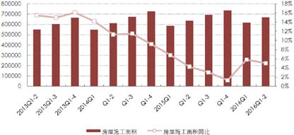 2016年1-6月,全国住宅施工面积459444万平方米,增长3.4%。住宅新开工面积53433万平方米,增长14.0%。住宅竣工面积29024万平方米,增长19.2%。(图4)