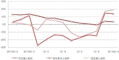 图4 2013年-2016年全国各季度累计住宅建设同比情况