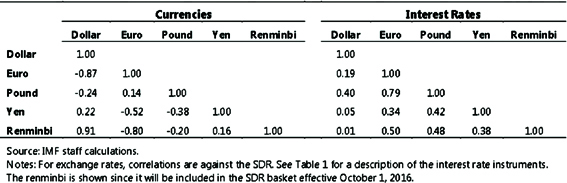 7月22日IMF 发布的报告《SDR的角色,首次思考》(The Role of the SDR-Initial Considerations)中阐述了SDR计价资产相对于其它传统资产的优势所在。文中指出,由于SDR是以一篮子货币形式存在,且SDR中各货币之间弱相关或负相关,各币种的参考利率之间的相关性也不强(详见图1),因此,相对于单一币种可以很大程度上避免汇率的波动风险,“一篮子利率”机制对于债券价格波动也起到了很好的对冲效果。