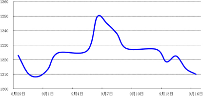 上周初,因有美联储官员发表鸽派讲话,美元走软,国际金价微涨;周五,由于美国公布的通胀数据好于预期,美元跳涨,金价跌至两周低位,收于1310.06美元/盎司,较前一周下跌1.33%。