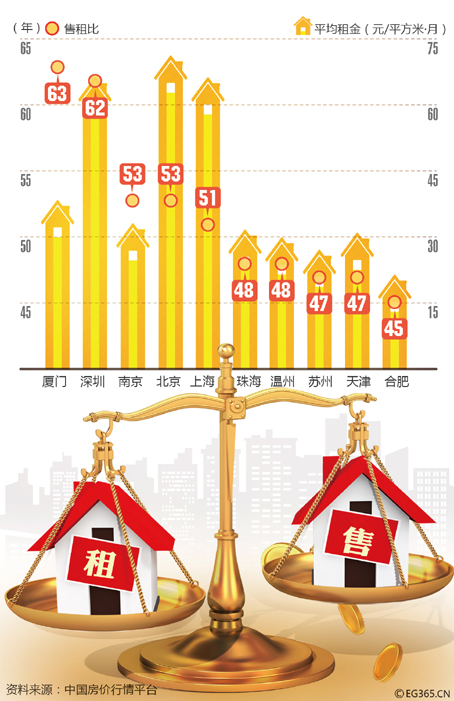 部分城市房屋租售比