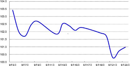 上周,因美联储如市场预期未加息,美元指数快速下跌,人民币外部压力有所缓解,人民币对美元当周微升0.02%,周五收于6.67。人民币加入SDR货币篮子在即,预计短期内人民币将维持稳定。