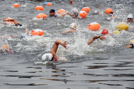 每天习作,假日里依旧。拿起相机避开人群来到一片草地,在这里找到了同趣人,他们自由地在草地里的扑捉和飞翔。10月5日,“体彩杯”2016年中国?绍兴铁人三项(跑步、游泳、骑自行车)公开赛终究还是被镜头牵引过去,来自国内外的共80多名“铁人”参加比赛。 ——郑学军(浙江绍兴分行)