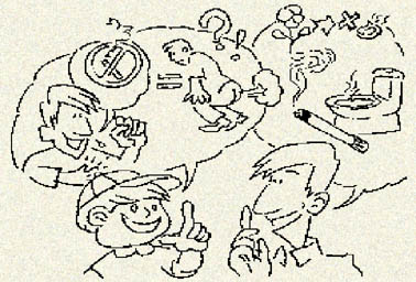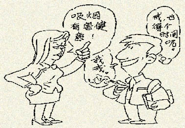 第五天,王二在单位写材料,顺手又把烟点上了。同事立刻提醒他:老王,怎么又抽上了啦?王二说,这不是需要打开思路嘛。明天,明天保证不抽。