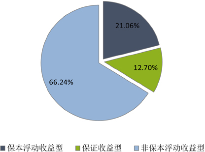 从收益类型来看,保证收益型产品发行了11241款,环比增加1386款,市场占比下降0.29个百分点至12.70%;保本浮动收益型产品发行了18646款,环比增加946款,市场占比下降2.27个百分点至21.06%;非保本浮动收益型产品发行了58641款,环比增加10334款,市场占比上升2.56个百分点至66.24%。(图1)