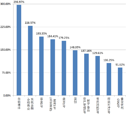 全年券商集合理财产品共发行1796款,环比减204款,降幅为10.20%。其中,债券型产品发行1317款,环比增512款,占159.06%;混合型产品发行318款,环比减254款,占38.41%;货币市场型产品发行188款,环比增141款,占22.71%,;FOF产品发行179款,环比减142款,占21.62%;股票型产品发行96款,环比减102款,占11.59%;其他型产品发行43款,环比减13款,占5.19%;QDII产品发行4款,环比增3款,占0.48%。出现上述情况,主要是因权益市场疲软,而债券市场在四季度以前维持牛市格局。 (图9)