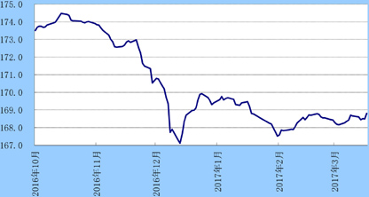 上周,因欧元区政治风险担忧降温,且市场对于欧洲央行将讨论收紧货币政策的预期,欧元获得支撑,欧元的反弹压制了美元走势,美元指数震荡下跌,收于99.77,较前一周下跌0.57%。