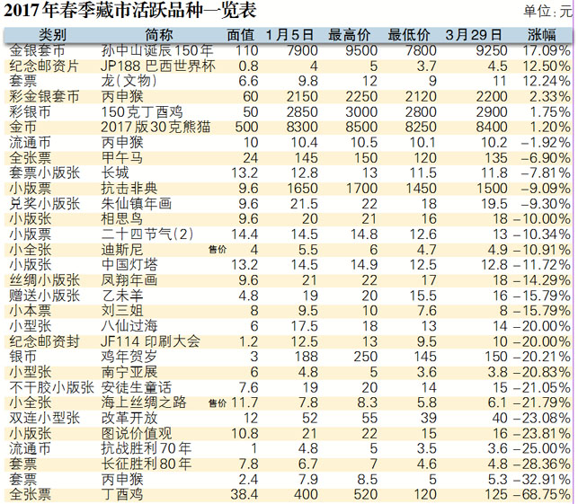 编者按:春天又开始散发迷人的芬芳,让人陶醉在花团锦簇的迷人风景中。不过,今年的藏市给人带来的却是冷寂,门可罗雀的市况怎么也无法令集藏者和投资者开心。与去年底相比,无论是市场人气还是成交量都在下降,而且大量热门品种的价格也同样在下跌,特别是新品迭创新低的表现让市场人士备感压力。