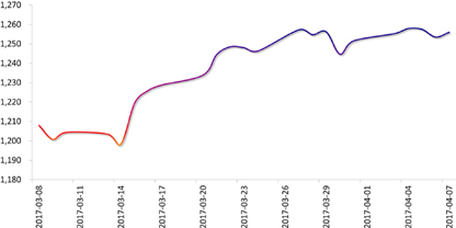 商品市场:上周,美国向叙利亚发射导弹推升避险情绪,金价一度上扬至接近1270美元/盎司。不过避险情绪持续时间较短,金价在冲高后迅速回落,周五收盘于1253.5美元/盎司,较前一周上涨0.38%。
