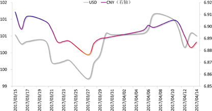 外汇市场:上周,叙利亚以及朝鲜问题带来的避险情绪主导外汇市场走势。传统的避险货币日元受益,美元指数则震荡下跌。周五收于100.51,较前一周下跌0.64%。