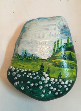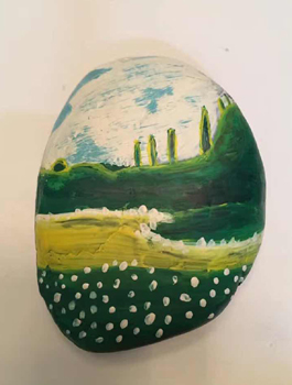 在这之前,其实她并不知道,自己居然有一天会爱上石头绘画。虽然,她经常会陪儿子在纸上画个漫画什么的,那也只是作为一个母亲陪伴儿子的职责,对画还谈不上喜欢与热爱。