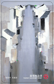 再来说说另外一枚《忆故乡》地铁纪念卡:“故乡”是吴冠中作品中最常被表现的题材之一,这股乡愁被他转化成画笔下的白墙黑瓦、小桥流水和春柳飞燕等美景,很难想像,一个人的童年要过得多么美好,才至于如此不愿忘怀,也正因此成就了其个人艺术创作的亮点,也成全了无数艺术爱好者的欣赏点。
