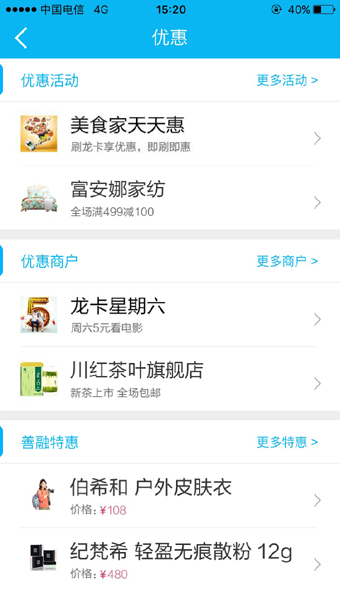 此外,新版手机银行在悦享生活频道首页设置“优惠”信息展示平台,汇聚建行产品服务优惠活动信息,为用户提供省钱省心周到服务。