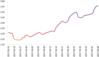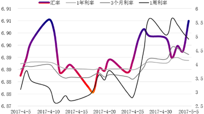 外汇市场:上周,人民币延续横盘走势,波动区间狭窄,当周累计小幅贬值0.04%。近期美元指数走势疲弱,相应施加于人民币压力减小,预计短期内人民币仍将维持窄幅区间震荡,难有趋势性升贬。