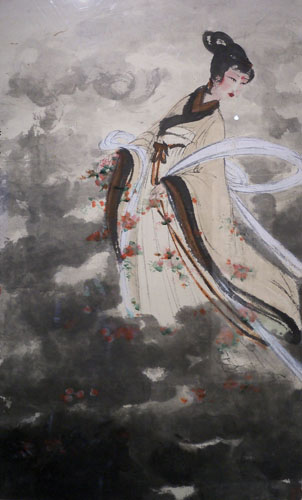 书画每次都是保利拍卖会的大项,想看全它得走上几个小时也仅仅是走马观花看个大概,而案头工作保利工作人员是下了苦功的,从这点看我们不得不感谢他们辛勤地工作。这幅傅抱石先生创作的《天女散花》立轴设色纸本,99×62.2厘米,约5.5平尺,该图2017年5月10—14日在江苏美术馆《中国近代十二大家展》上展出,并有三处著录说明(略),底价1200—1800万元。
