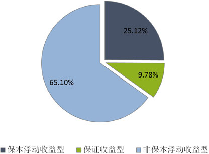 从收益类型来看,保证收益型产品发行了857款,环比增加53款,市场占比上升0.20个百分点至9.78%;保本浮动收益型产品发行了2200款,环比减少8款,市场占比下降1.19个百分点至25.12%;非保本浮动收益型产品发行了5702款,环比增加322款,市场占比上升0.99个百分点至65.10%。(图1)