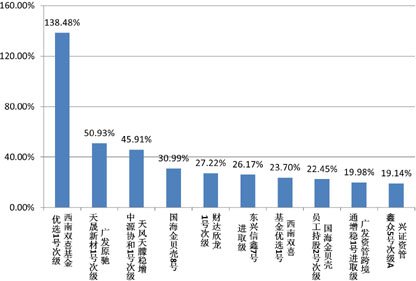 从表现靠前的产品来看,排名前十的依然全部为股票型产品。(图8)