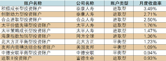 投连险账户业绩表现:月度平均收益率为-0.53%,泰康人寿积极成长型投资账户表现最佳