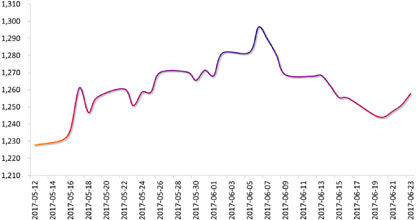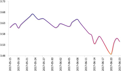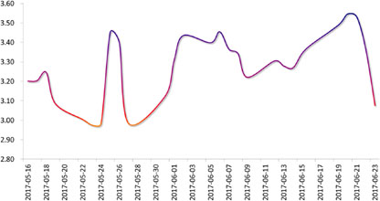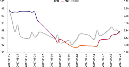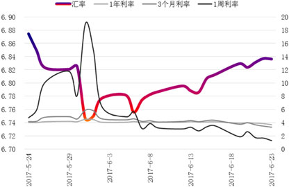 离岸人民币市场:随着央行上周连续调贬人民币中间价,离岸人民币汇率延续弱势,最高触及6.8445的近1个月高位,全周贬值约0.3%。此前市场普遍担心的半年流动性紧张局面并未出现,机构此前准备的大量离岸人民币流动性不断压低市场利率和掉期点,ON和TN掉期点跌至负数,为去年6月29日以来的首次。预计流动性宽松状况将持续到7月初。