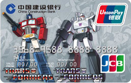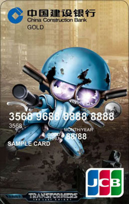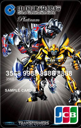 JCB是建行发行变形金刚卡的老搭档了,这次也不例外。JCB卡的白金卡选择了擎天柱和人气王大黄蜂,都是正能量的化身(参见图4)。金卡卡面分别用了擎天柱、威震天。