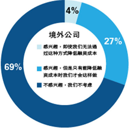 在受访的境外公司中,31%的企业表示其将考虑发行熊猫债券。大部分受访企业表示,只有当融资成本更低时他们才考虑发行熊猫债券。(图22、23)