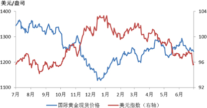 二季度,美国经济数据整体低迷,特别是通胀指标回落、实际利率低迷、美元走弱,金价高位区间震荡。4月朝鲜半岛地缘政治风险和6月初特朗普“通俄门”调查风波,两度推动金价上冲1300美元/盎司的中长期阻力位未果。6月,在美联储二度加息以及年内缩表预期的组合拳压制下,金价两度回落、底部逐渐上移、波动区间逐渐收窄。