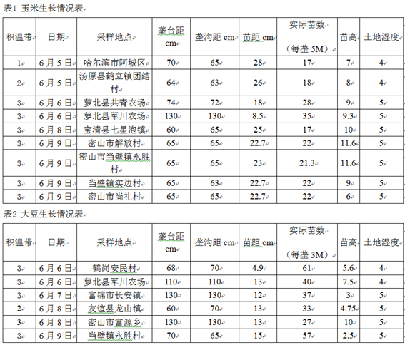 1、大豆玉米出苗长势良好,土壤墒情较往年偏好