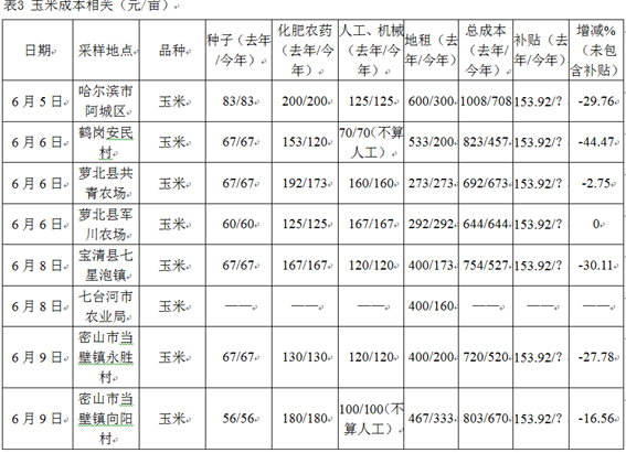 3、在比较收益引导下,农民改种情况明显,符合旱改水条件的均改种水稻,其他还有部分旱地改种大豆。预估玉米种植面积减幅在15%-30%,大豆的种植面积增幅至少为10%。