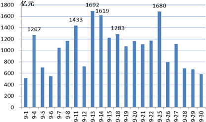9月同业存单的到期量迎来历史最高峰,9月到期2.3万亿元,较上月大幅增长了44%。同业存单到期续发的压力较大,再叠加季末MPA考核的因素影响,资金面仍将偏紧。但由于各机构提前储备资金应对,以及外汇占款可能恢复增长、财政投放绝对量可能较大等因素都有利于资金面的稳定,资金面可能较8月份略有缓和。
