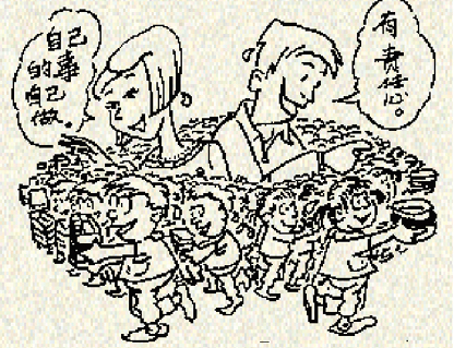 活动从聚餐开始,每个孩子都要负责一些劳动项目,像分发食物、收拾餐具、垃圾分类等等。这样做的目的是为了培养孩子认同劳动的价值与快乐,并让他们明白,劳动不只是为了赚钱而存在的。