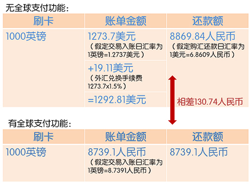 (2)在全球所有国家或地区使用具有全球支付功能的龙卡信用卡时,均免收1.5%的外汇兑换手续费,支出更优惠。举个例子: