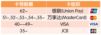 卡号前两位对应不同的卡组织,62开头是银联卡,5开头是万事达卡,4开头是Visa卡,3开头是JCB卡。(黎晓霖)