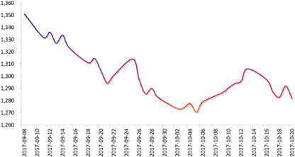 商品市场:上周,因美元整体走强,加之美国参议院批准2018财年预算议案,为减税铺平道路,带动股市、美元和美债收益率上涨,进一步令金价承压下跌,周五收于1281.80美元/盎司,较前一周下跌1.86%。