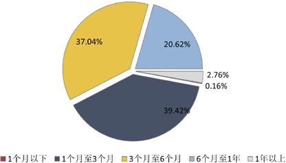 从投资期限来看,1个月以下产品发行了16款,环比减少4款,市场占比下降0.04个百分点至0.16%;1-3个月产品发行了3856款,环比增加8款,市场占比上升0.62个百分点至39.42%;3-6个月产品发行了3624款,环比增加55款,市场占比上升1.07个百分点至37.04%;6-12个月产品发行了2017款,环比减少209款,市场占比下降1.82个百分点至20.62%;1年以上产品发行了270款,环比增加13款,市场占比上升0.17个百分点至2.76%。(图3)