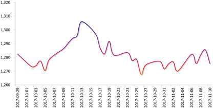 商品市场:上周,沙特部分皇室成员及高官受贪腐指控被捕,政局动荡,避险情绪提振升温,国际金价上涨;此外,受税改不确定性拖累,美元震荡走弱,进一步提振金价,周五收于1257.6美元/盎司,较前一周上涨0.43%。