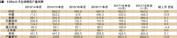 11月24日17-18年度仓单428张,其中地产棉仓单48张,新疆棉仓单380 张;内地仓单109 张,新疆仓库319张(北疆234张,库尔勒85张)。不考虑今年新开启的新疆交割库,今年的仓单生成数量低于去年同期水平。2017 年11月29日仓单数1101张,有效预报575张,折合棉花6.70万吨;远远高于今年预报数量,原因还是在于郑棉贴水现货,现货商注册仓单意愿降低;地产棉质量下降,符合仓单质量要求或升水高的比例比较低,若按照往年的规律,郑棉潜在的仓单压力正在加大。
