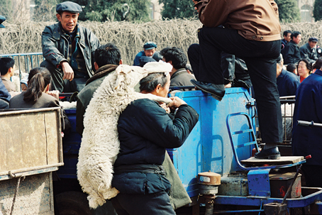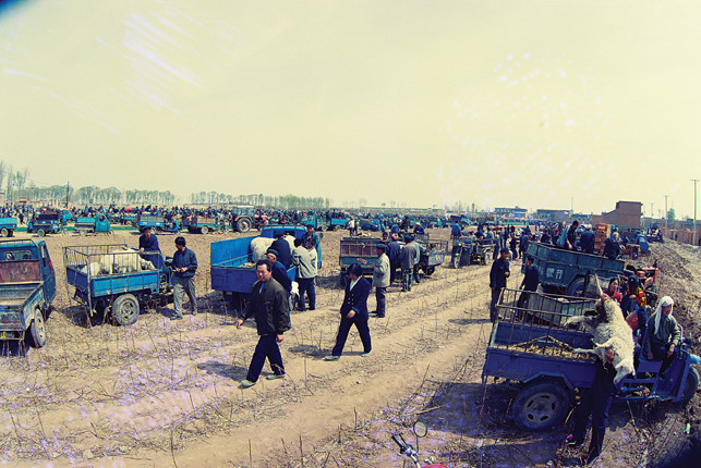 去东阳赶集源于我喜欢上摄影这个行当。1996年初春,我第一次和影友坐着早晨6点的火车去赶集,这一赶就是二十年。东阳镇处在晋中盆地的中心位置,是通往榆次、太谷、清徐三市县的交通要道。由于地理位置的重要性,每年的农历二月二十四,春季农忙之前,这里就举行骡马交易大会。不用组织,十里八乡的村民都会来赶集。大家在庙会上买卖各种的农机产品、家用百货、衣服鞋帽、干果点心等,再热热闹闹的吃碗河捞面、莜面、元宵、月饼等小吃,再看上两场大戏,这生活就感觉十分的满足。近年来物资种类发生了不小的变化,过去唱主角的牛、驴、骡等大牲口随着农业机械化的进程,逐渐淡出了人们的视野,只有马和羊的交易还很火热,现如今狗、兔子、鸽子、观赏鸟、花卉等新品种逐渐多了起来,许多的南方商人也早在10多年前参加进了庙会,带来了南方的茶叶、水果、小吃,当地人民的物质生活得到了极大的改善。但不管怎么变化,庙会上人山人海,车水马龙的热闹劲儿始终如一。