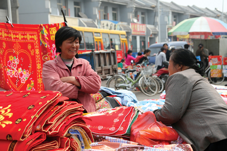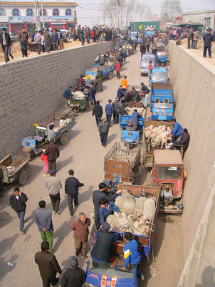 早年的牛马羊集市是在村北的庄稼地里举行,农副产品则是在村子的两条主要街道展开。中午则在村委会对面的戏台看戏。现如今,村子又扩展了一条街,盖起了一排排的三层小楼,牛羊市就迁到了村东铁路桥下的空场地,骡马市则搬到了村外的小树林里,只有农副产品集市还在村里的街道上,围着戏台展开。过去中午和晚上才开锣的大戏也改成了早晨9点开场。