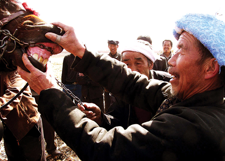 小树林的骡马市上人头攒动,骏马嘶鸣,铃声清脆,场面十分壮观。再看交易的人们,有的高声说价,有的拍肩捋袖,买卖双方穿梭其间,看牙口,抚皮毛,观腿脚,评身板,一派热火朝天的景象。