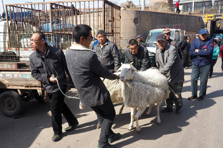 东阳庙会交易最多的是羊,牛羊市位于在村东口铁道桥下。热闹的市场里,“经济”们在人群里穿梭讲价,买家挑好羊后与经济老汉一阵耳语,就由经济老汉与卖家两个人手握着手在衣服下面捏价,几个回合后,双方抓着手露出了笑容。这是骡马市交易沿用的古老方式买卖双方不直接交易,由经济在买卖双方衣襟里面用手指捏价交易,有时候价钱谈不拢,双方就大声的争执起来,引得看热闹的人们哄堂大笑,十分的热闹。只有在这里,才会切身感觉到这才是最朴素温暖最具乡土气息的味道,才会真正地融入进老百姓普普通通切切实实的生活中。