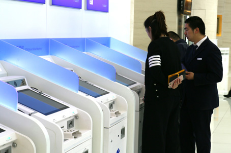 在河北分行营业部设在师大校园内的旗舰店内,最吸引大家眼球的是一台台崭新的智慧柜员机。它们排列整齐、屏幕闪亮,在大堂经理的指引下,同学们依次上前自助办理业务,很快便满意而归。“这些大家伙太能干啦!开户、办卡、换外汇……建行绝大部分的非现金业务都可在这个机器办理。”这是“新一代”系统上线带动物理渠道转型的成果,现金与非现金业务的分流使业务处理变得快捷高效:现金业务可选择存取款一体机或者现金柜台;非现金业务可选择智慧柜员机;理财业务可选择专业的客户经理。“用更少的时间为您提供更多的服务”,“金蜜蜂”们与更多的师生一同分享科技进步带来的金融服务效率提升。