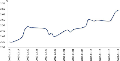 债券市场:虽然上周央行放量逆回购,并提前普惠金融定向降准时间至1月25日,但银监会4号文延续强监管,且经济数据向好、流动性紧平衡、通胀预期升温,美债收益率整体上行,共同推动10年期国债收益率上行。截至上周五,10年期国债收益率较前一周上行4BP至3.98%。