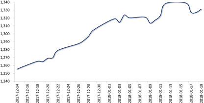 上周,美元走软,提振国际金价,但周中,美元从三年低点反弹令金价承压下挫。周五,受美国政府停摆危机影响,市场避险情绪升温,金价跌幅收窄,当日收盘于1331.2美元/盎司,较前一周下跌0.58%。