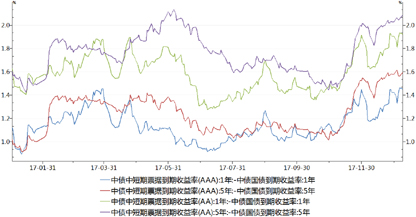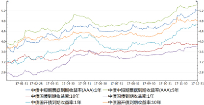 图1 2017年银行间国债、政策性金融债、中短期票据走势
