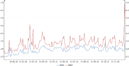图4 2017年银行间隔夜与七天质押式回购利率走势