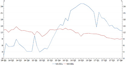 图9 近年中国货币供应量增速走势