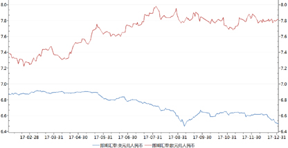 图12 2017年人民币兑美元、欧元汇率走势