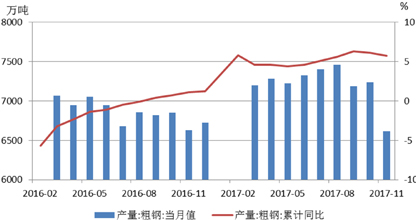 宏观经济方面主要关注两点。一是国内经济增速,目前世界经济稳步复苏,预计将对国内经济增速有助力,稳增长目标不难实现,预计基建等财政刺激力度不会太大;二是货币资金环境,供给侧改革开展至今,去杠杆将成为2018年重点,预计货币资金环境维持偏紧。因此,总体来看,宏观经济环境对钢铁市场的影响偏空。